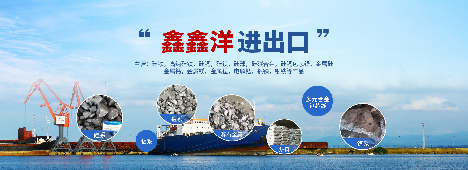 中國鑫鑫洋進(jìn)出口有限公司成立于2023年5月8日,總部位于美麗的塞上江南寧夏銀川市閱海灣中 央商務(wù)區(qū),公司隸屬于阿爾巴迪(寧夏)治煉有限公司,主要經(jīng)營集團(tuán)公司產(chǎn)品:硅鐵,高純硅鐵,硅鈣,硅鎂,硅球,硅碳合金,硅鈣包芯線,金屬硅,金屬鈣,金屬鎂,金屬錳,電解錳,釩鐵,銀鐵等產(chǎn)品的進(jìn)出口業(yè)務(wù)。        中國鑫鑫洋進(jìn)出口有限公司秉承誠信為根本、市場為導(dǎo)向、質(zhì)量為生命的經(jīng)營理念,以“銳意進(jìn)取”的服務(wù)態(tài)度為宗旨,您想要的就是我們?yōu)槟?wù)的,您的滿意就是我們不懈的追求。